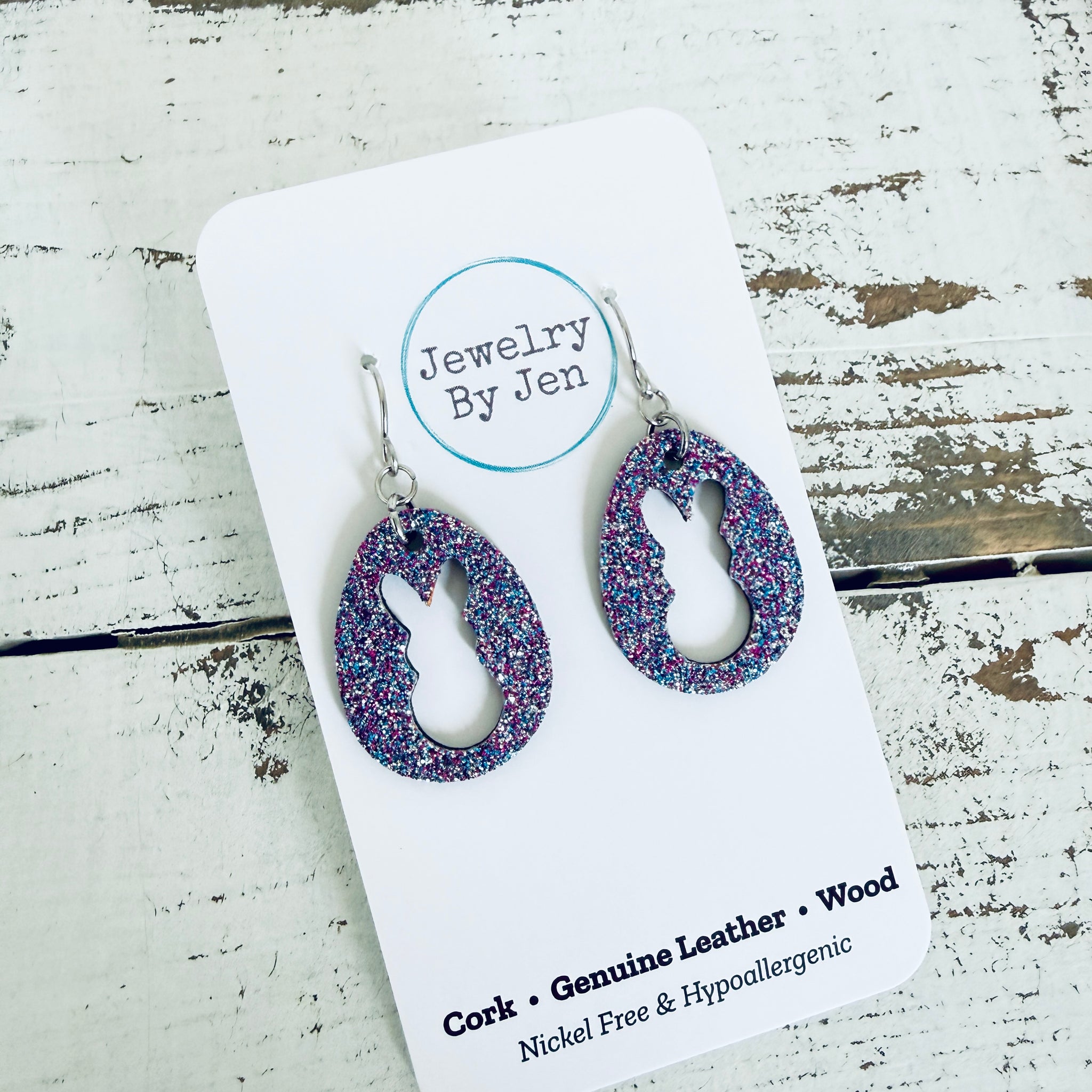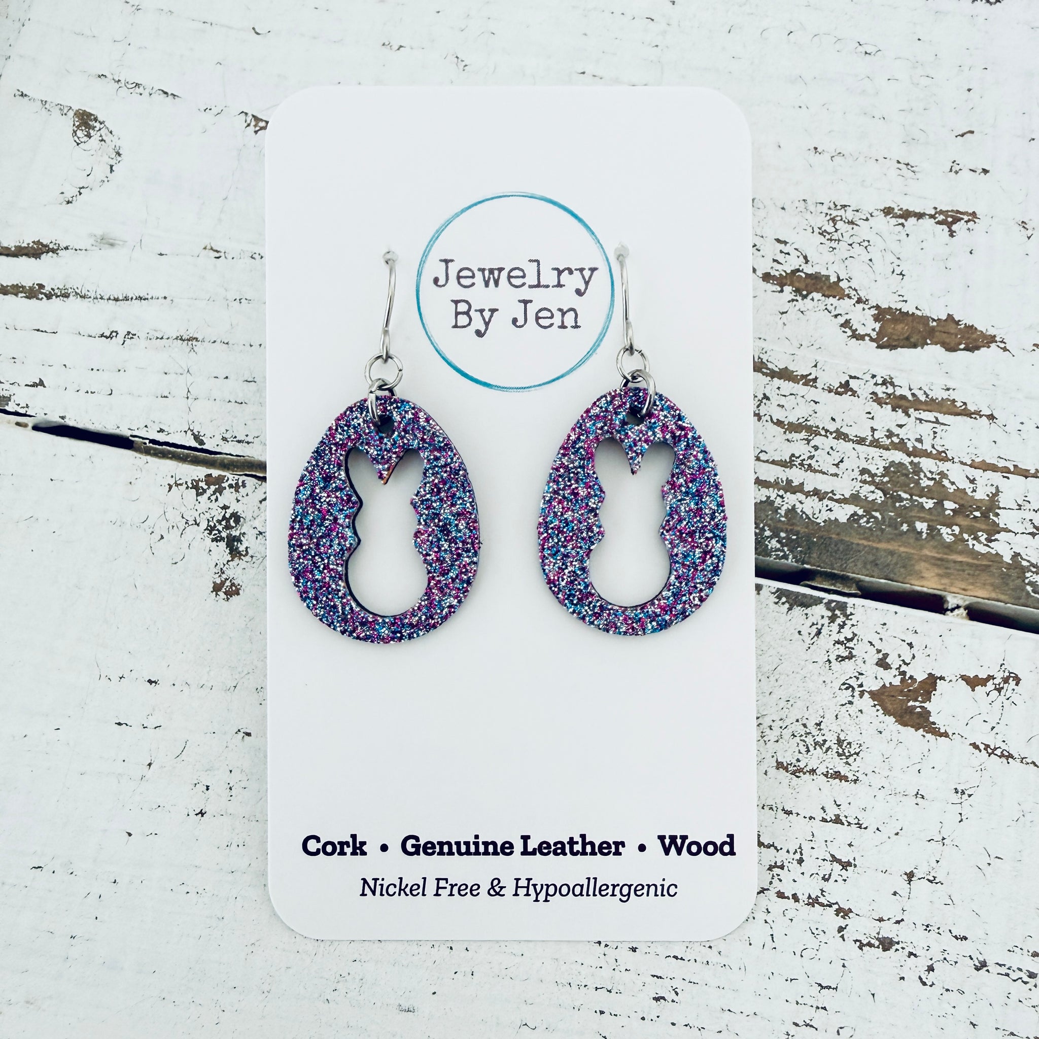 Easter Bunny Cutout Earrings: Aurora Purple Fine Glitter