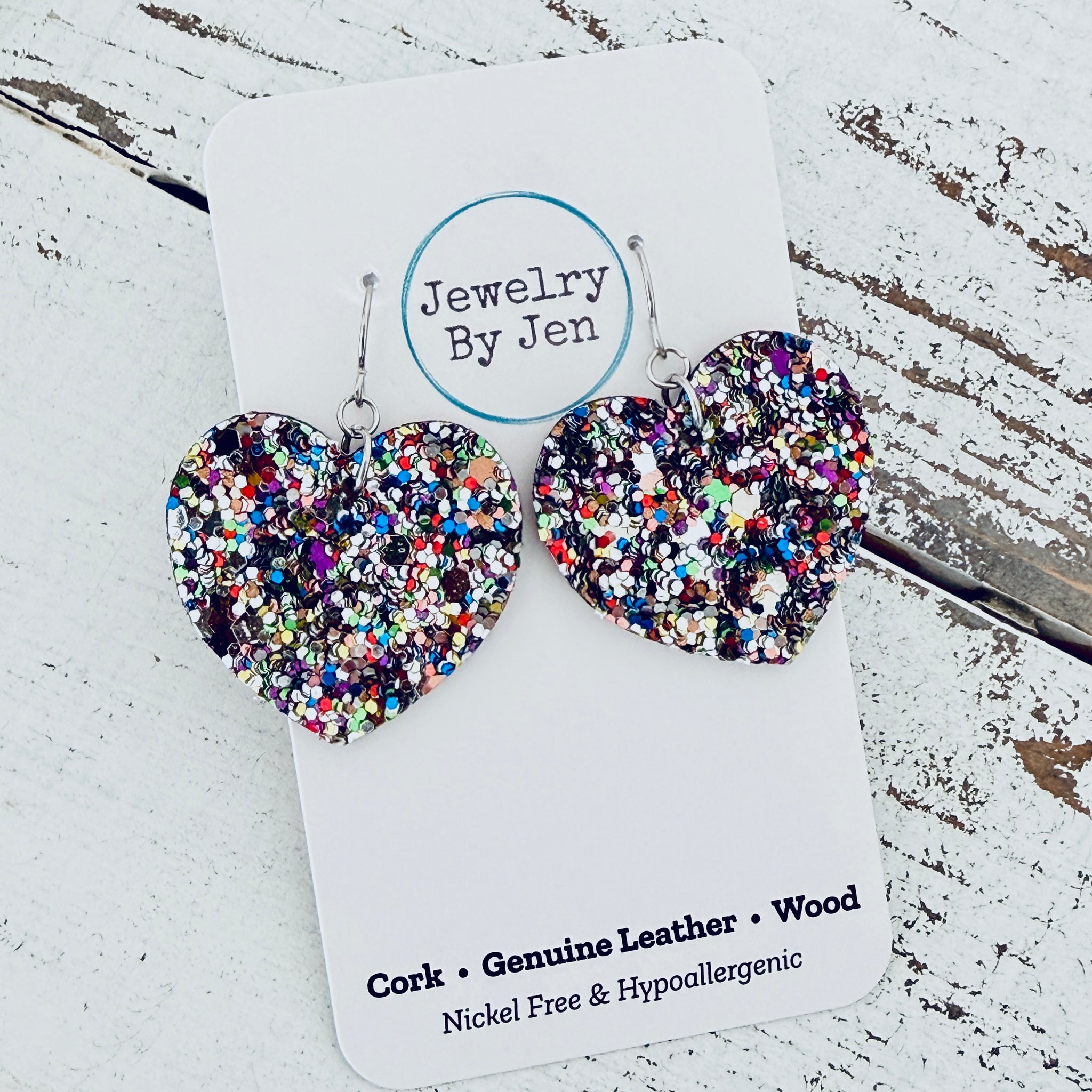 Medium Heart Earrings: Jeweled Confetti Glitter
