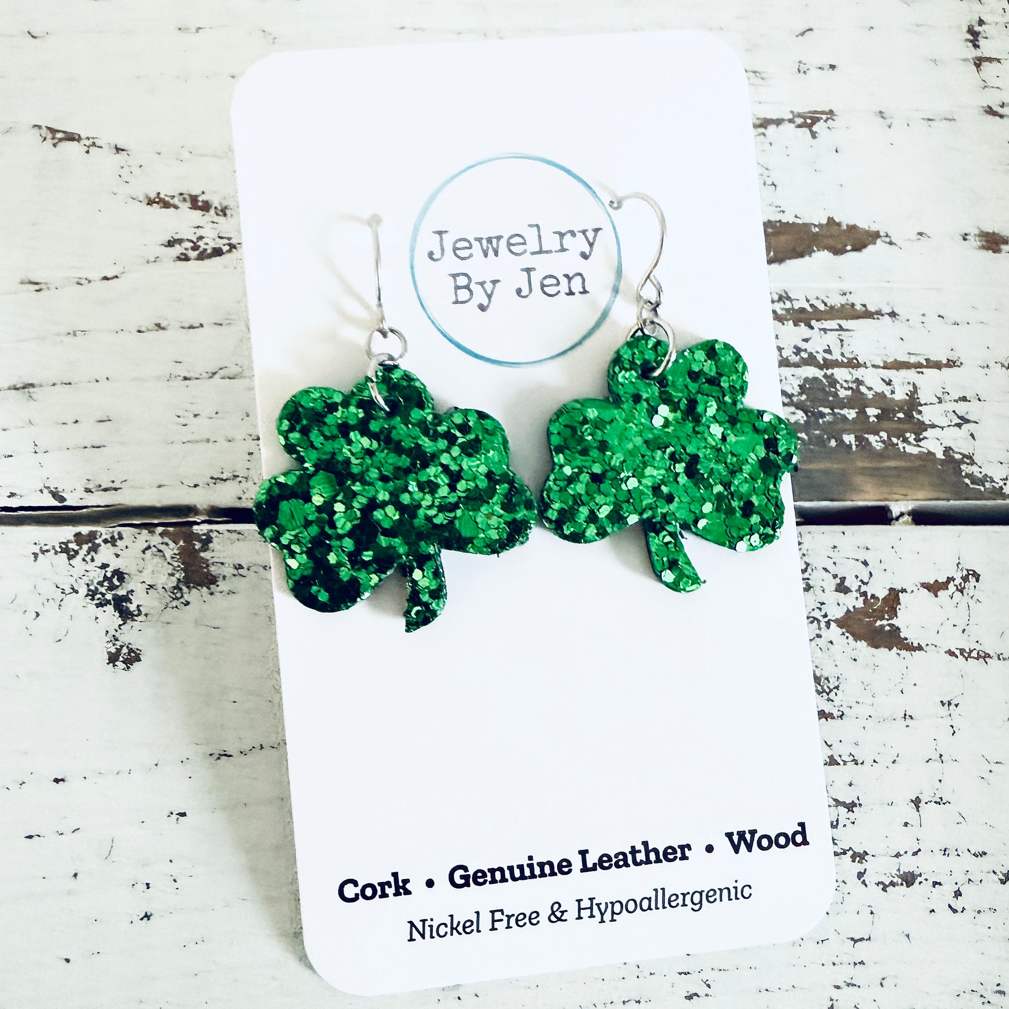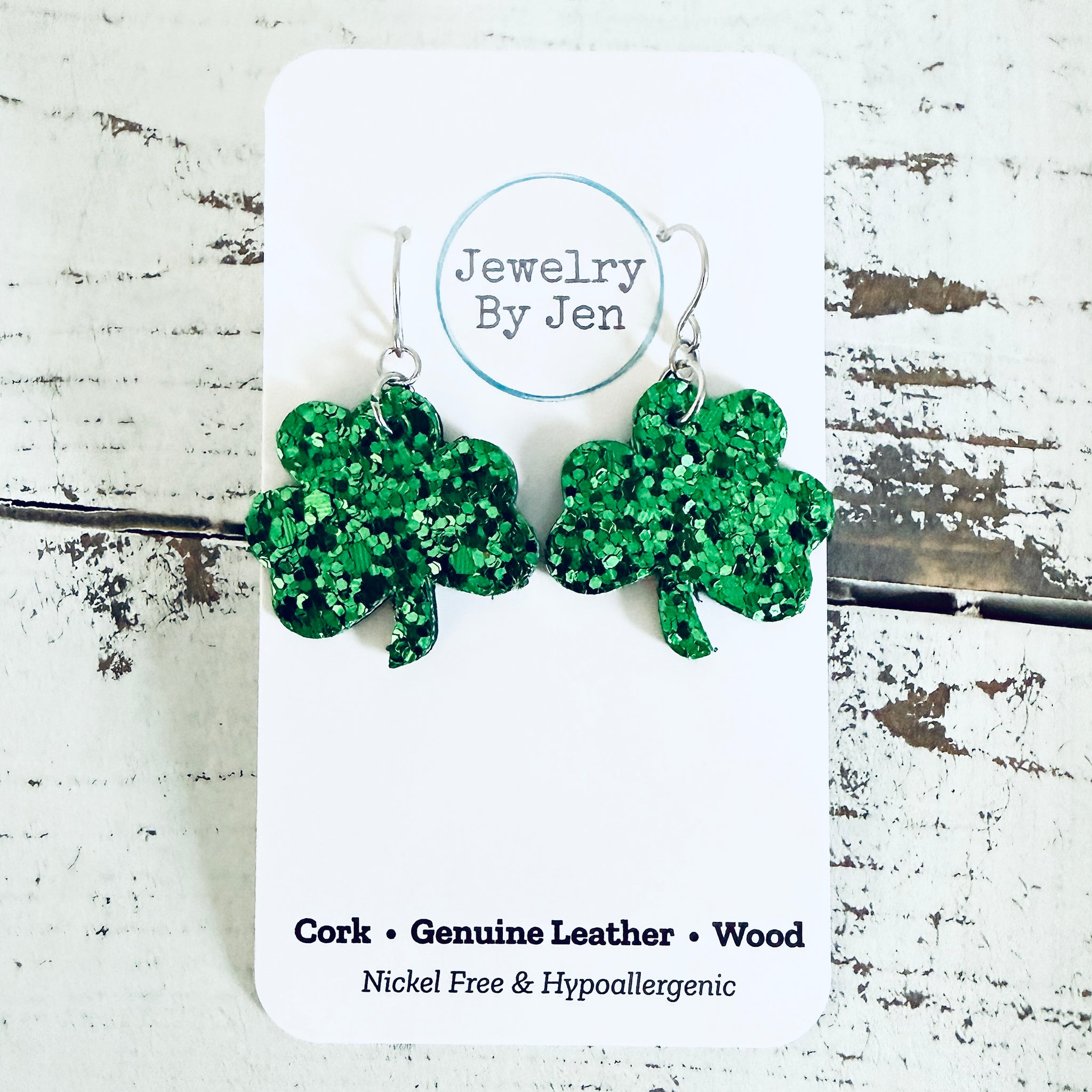 Shamrock Earrings (Small): Green Glitter